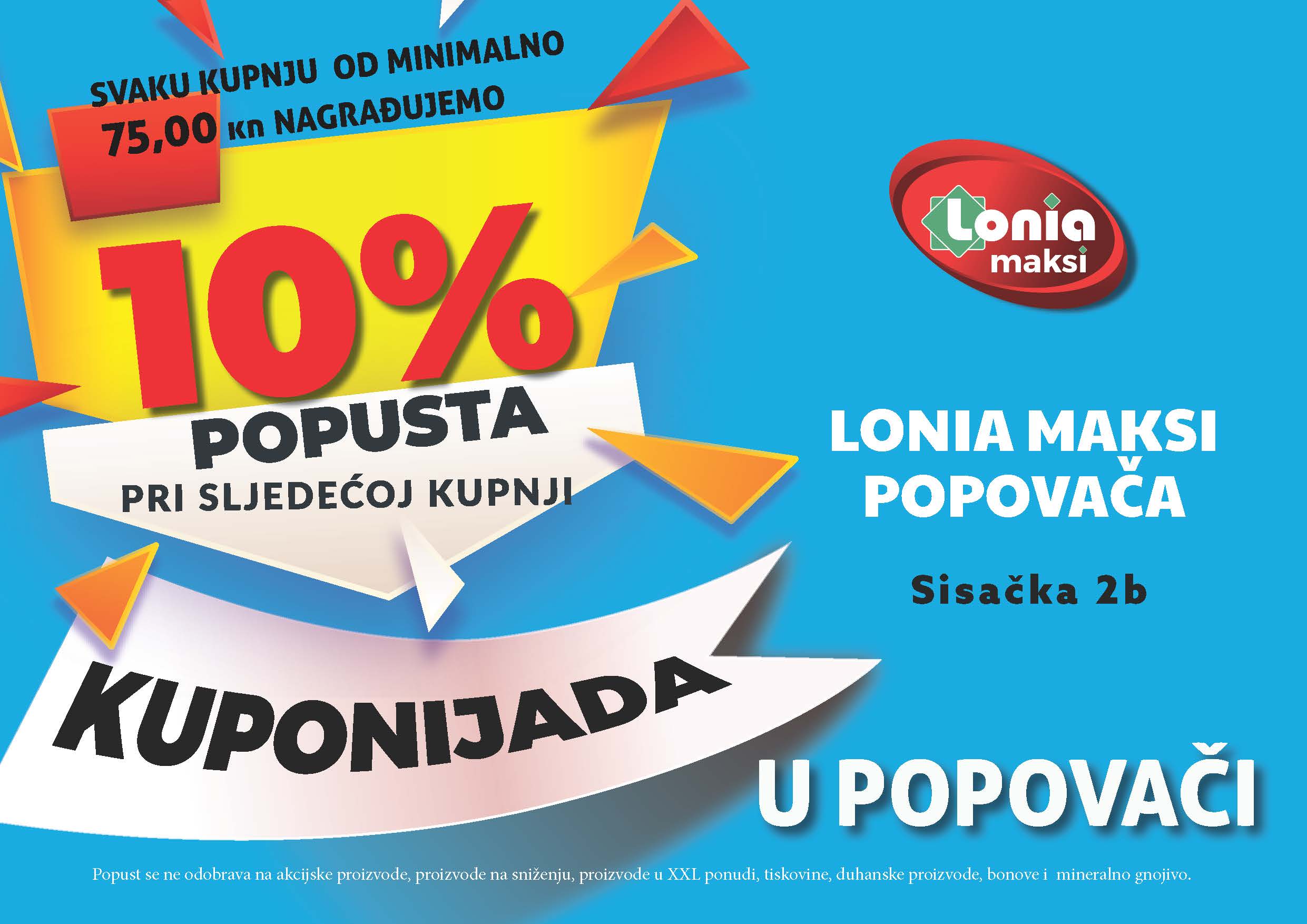 Na raspolaganju vam stojimo u Lonia maksi Popovača (Sisačka 2b), gdje smo za vas pripremili super akcije i iznenađenja, te kupone s popustima od 10% za sve kupnje iznad 75,00 kn!